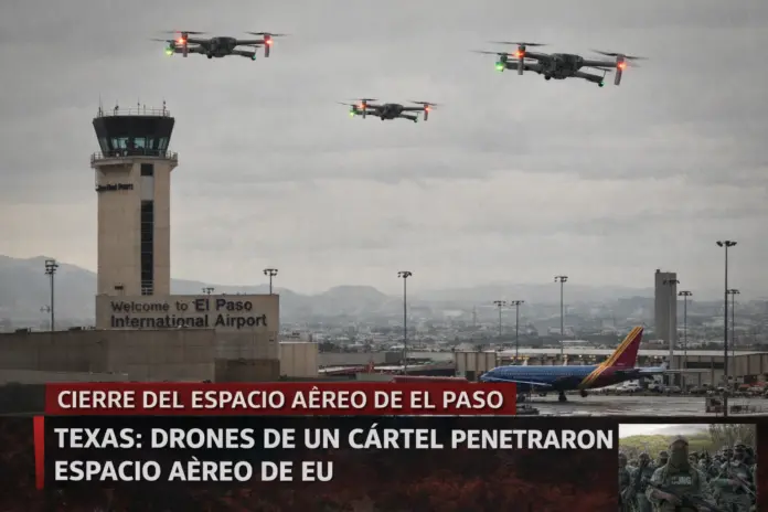 El cierre del espacio aéreo en El Paso activó alerta de defensa nacional tras la incursión de drones de cártel en Texas. La FAA suspendió vuelos comerciales y declaró la zona como espacio aéreo restringido antes de anunciar la reapertura.