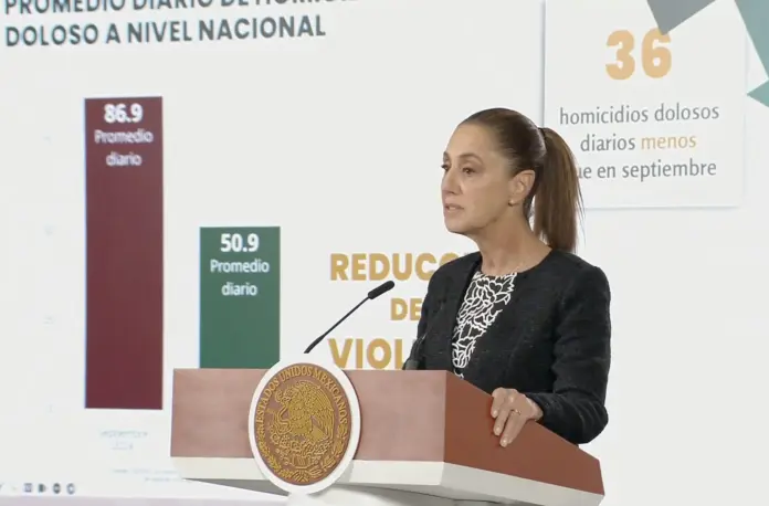 La presidenta Claudia Sheinbaum destacó el trabajo del gabinete de Seguridad que ha permitido que, de septiembre de 2024 a enero de 2026 haya 36 homicidios menos en el país.