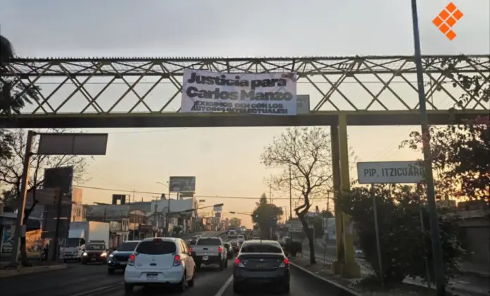 Durante la madrugada de este martes, fue instalada una lona en la salida a Quiroga —uno de los puntos carreteros con mayor flujo vehicular— con un mensaje directo: exigir que las autoridades identifiquen a los autores intelectuales del crimen.