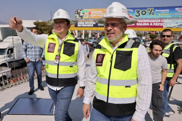 Detalló que, para optimizar el tránsito en la zona se edifica este puente con materiales de alta calidad, como el acero, lo que garantiza su seguridad y durabilidad. Informó que actualmente se construyen los pasos elevados y la gaza vial para conectar la calzada La Huerta con el libramiento Sur de Morelia.
