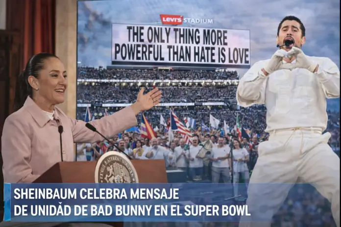 🔑 Palabras clave: críticas Super Bowl, Sheinbaum celebra mensaje, Bad Bunny mensaje de unidad, Debate Bad Bunny.